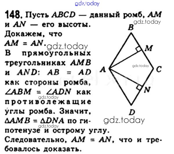 Ответы к § 5. Ромб Решение. Глава 1. Четырехугольники 148 Учебнику по Геометрии для 8 класса Мерзляк, Полонский Вентана-граф Алгоритм успеха 2015