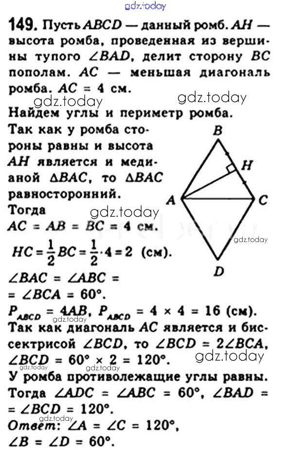 На страницах сайта gdz.today вы найдете учебный и вспомогательный материал, направленный на улучшения знаний школьной программы. ГДЗ - онлайн мир знаний § 5. Ромб Решение. Глава 1. Четырехугольники 149 Учебнику по Геометрии для 8 класса Мерзляк, Полонский Вентана-граф Алгоритм успеха 2015