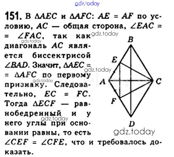 Ответы к § 5. Ромб Решение. Глава 1. Четырехугольники 151 Учебнику по Геометрии для 8 класса Мерзляк, Полонский Вентана-граф Алгоритм успеха 2015