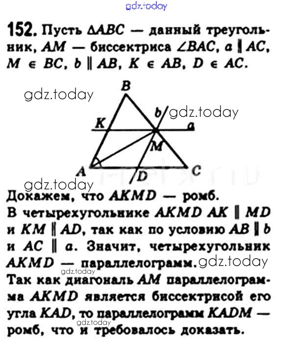 Ответы к § 5. Ромб Решение. Глава 1. Четырехугольники 152 Учебнику по Геометрии для 8 класса Мерзляк, Полонский Вентана-граф Алгоритм успеха 2015