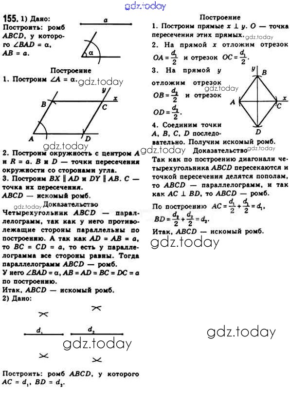 На страницах сайта gdz.today вы найдете учебный и вспомогательный материал, направленный на улучшения знаний школьной программы. ГДЗ - онлайн мир знаний § 5. Ромб Решение. Глава 1. Четырехугольники 155 Учебнику по Геометрии для 8 класса Мерзляк, Полонский Вентана-граф Алгоритм успеха 2015