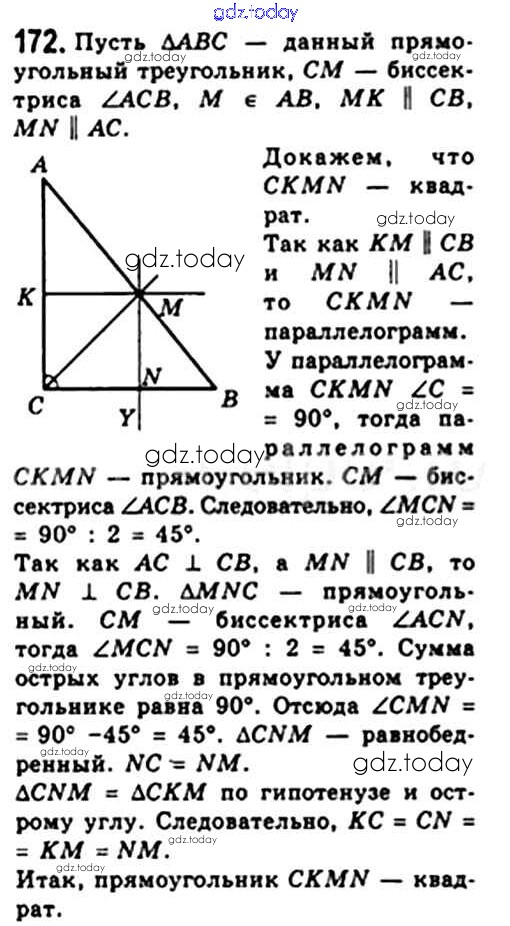Ответы к § 6. Квадрат Решение. Глава 1. Четырехугольники 172 Учебнику по Геометрии для 8 класса Мерзляк, Полонский Вентана-граф Алгоритм успеха 2015