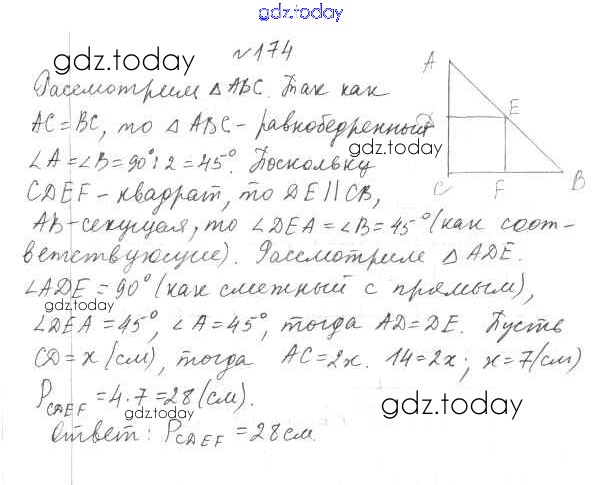 Ответы к § 6. Квадрат Решение. Глава 1. Четырехугольники 174 Учебнику по Геометрии для 8 класса Мерзляк, Полонский Вентана-граф Алгоритм успеха 2015