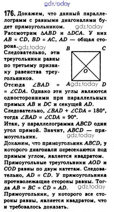 Ответы к § 6. Квадрат Решение. Глава 1. Четырехугольники 176 Учебнику по Геометрии для 8 класса Мерзляк, Полонский Вентана-граф Алгоритм успеха 2015