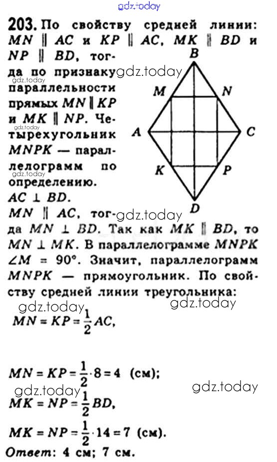 Ответы к § 7. Средняя линия треугольника Решение. Глава 1. Четырехугольники 203 Учебнику по Геометрии для 8 класса Мерзляк, Полонский Вентана-граф Алгоритм успеха 2015