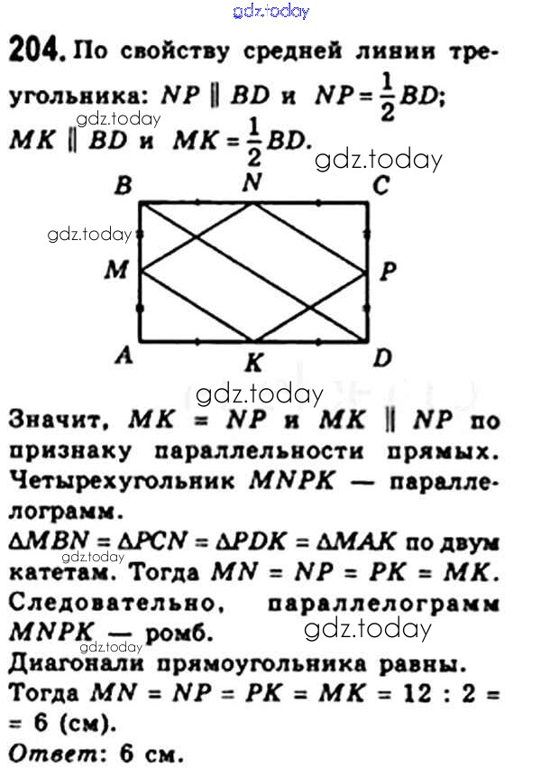 Ответы к § 7. Средняя линия треугольника Решение. Глава 1. Четырехугольники 204 Учебнику по Геометрии для 8 класса Мерзляк, Полонский Вентана-граф Алгоритм успеха 2015