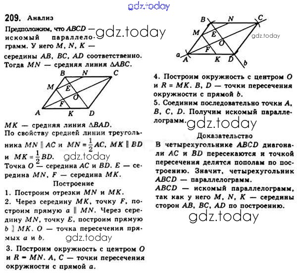 На страницах сайта gdz.today вы найдете учебный и вспомогательный материал, направленный на улучшения знаний школьной программы. ГДЗ - онлайн мир знаний § 7. Средняя линия треугольника Решение. Глава 1. Четырехугольники 209 Учебнику по Геометрии для 8 класса Мерзляк, Полонский Вентана-граф Алгоритм успеха 2015
