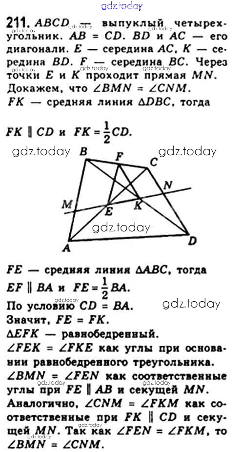 Ответы к § 7. Средняя линия треугольника Решение. Глава 1. Четырехугольники 211 Учебнику по Геометрии для 8 класса Мерзляк, Полонский Вентана-граф Алгоритм успеха 2015