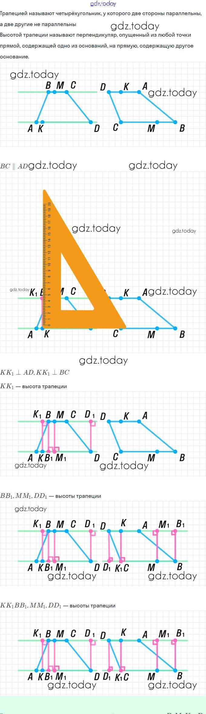 На страницах сайта gdz.today вы найдете учебный и вспомогательный материал, направленный на улучшения знаний школьной программы. ГДЗ - онлайн мир знаний § 8. Трапеция Решение. Глава 1. Четырехугольники 217 Учебнику по Геометрии для 8 класса Мерзляк, Полонский Вентана-граф Алгоритм успеха 2015