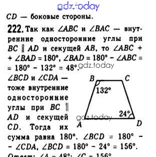 На страницах сайта gdz.today вы найдете учебный и вспомогательный материал, направленный на улучшения знаний школьной программы. ГДЗ - онлайн мир знаний § 8. Трапеция Решение. Глава 1. Четырехугольники 222 Учебнику по Геометрии для 8 класса Мерзляк, Полонский Вентана-граф Алгоритм успеха 2015