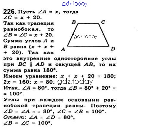 Ответы к § 8. Трапеция Решение. Глава 1. Четырехугольники 226 Учебнику по Геометрии для 8 класса Мерзляк, Полонский Вентана-граф Алгоритм успеха 2015