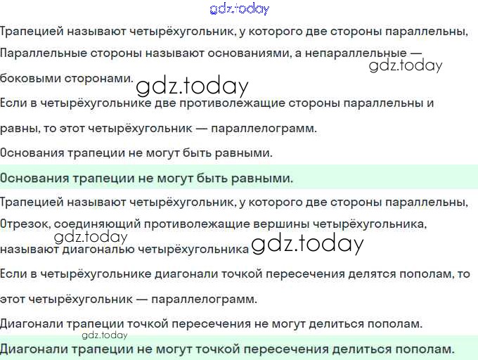 На страницах сайта gdz.today вы найдете учебный и вспомогательный материал, направленный на улучшения знаний школьной программы. ГДЗ - онлайн мир знаний § 8. Трапеция Решение. Глава 1. Четырехугольники 229 Учебнику по Геометрии для 8 класса Мерзляк, Полонский Вентана-граф Алгоритм успеха 2015