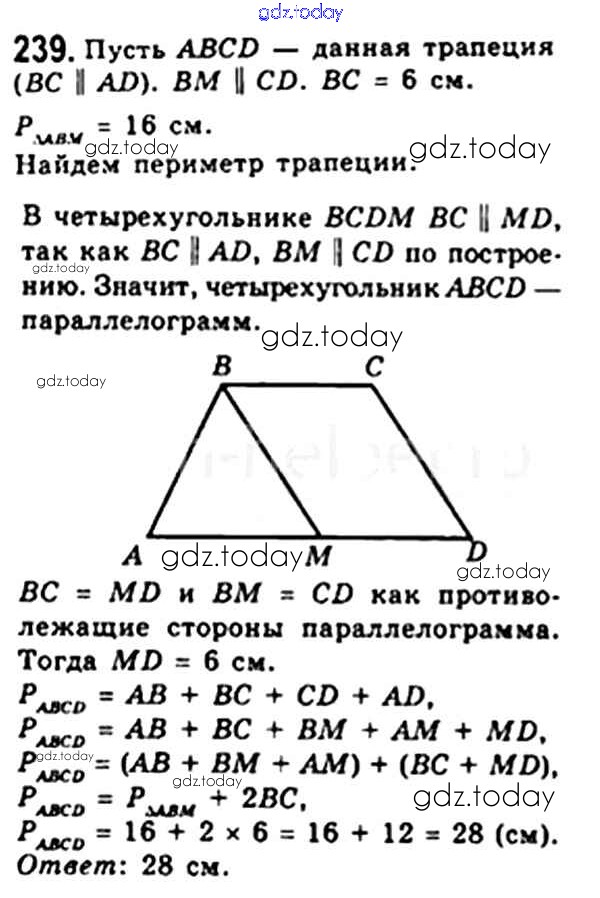 Ответы к § 8. Трапеция Решение. Глава 1. Четырехугольники 239 Учебнику по Геометрии для 8 класса Мерзляк, Полонский Вентана-граф Алгоритм успеха 2015
