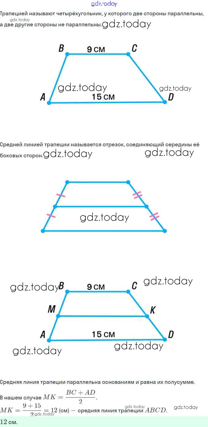 На страницах сайта gdz.today вы найдете учебный и вспомогательный материал, направленный на улучшения знаний школьной программы. ГДЗ - онлайн мир знаний § 8. Трапеция Решение. Глава 1. Четырехугольники 241 Учебнику по Геометрии для 8 класса Мерзляк, Полонский Вентана-граф Алгоритм успеха 2015