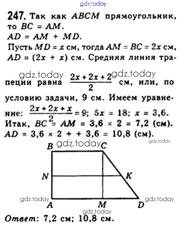 Ответы к § 8. Трапеция Решение. Глава 1. Четырехугольники 247 Учебнику по Геометрии для 8 класса Мерзляк, Полонский Вентана-граф Алгоритм успеха 2015
