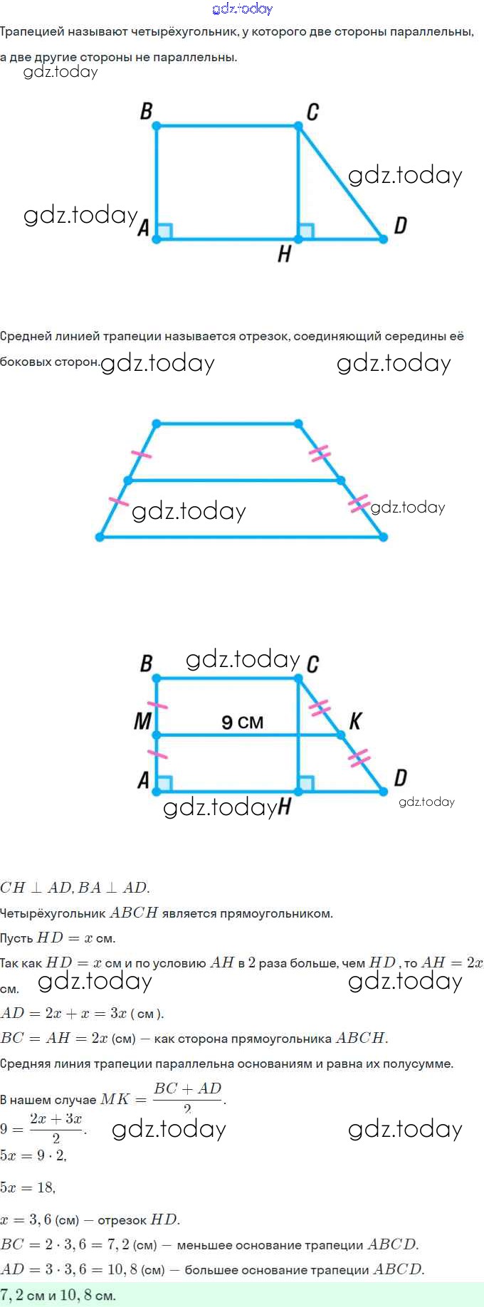 На страницах сайта gdz.today вы найдете учебный и вспомогательный материал, направленный на улучшения знаний школьной программы. ГДЗ - онлайн мир знаний § 8. Трапеция Решение. Глава 1. Четырехугольники 247 Учебнику по Геометрии для 8 класса Мерзляк, Полонский Вентана-граф Алгоритм успеха 2015