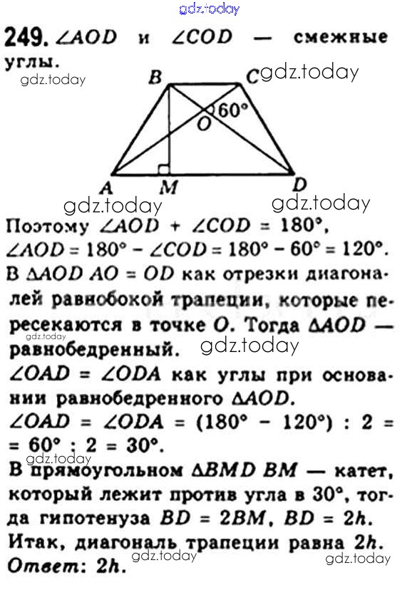 Ответы к § 8. Трапеция Решение. Глава 1. Четырехугольники 249 Учебнику по Геометрии для 8 класса Мерзляк, Полонский Вентана-граф Алгоритм успеха 2015