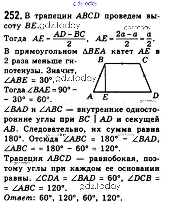 На страницах сайта gdz.today вы найдете учебный и вспомогательный материал, направленный на улучшения знаний школьной программы. ГДЗ - онлайн мир знаний § 8. Трапеция Решение. Глава 1. Четырехугольники 252 Учебнику по Геометрии для 8 класса Мерзляк, Полонский Вентана-граф Алгоритм успеха 2015