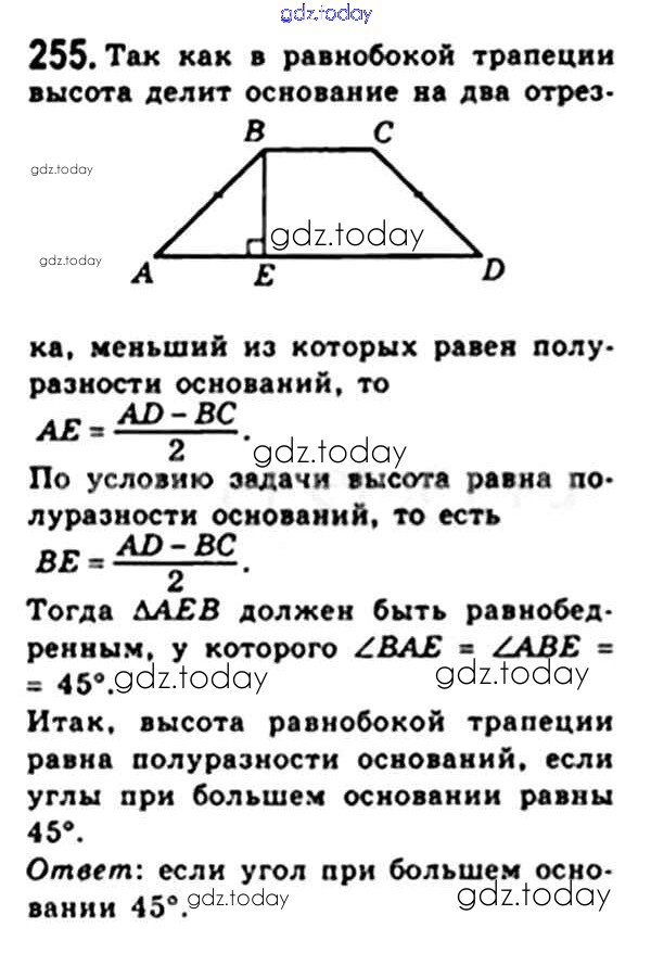 На страницах сайта gdz.today вы найдете учебный и вспомогательный материал, направленный на улучшения знаний школьной программы. ГДЗ - онлайн мир знаний § 8. Трапеция Решение. Глава 1. Четырехугольники 255 Учебнику по Геометрии для 8 класса Мерзляк, Полонский Вентана-граф Алгоритм успеха 2015