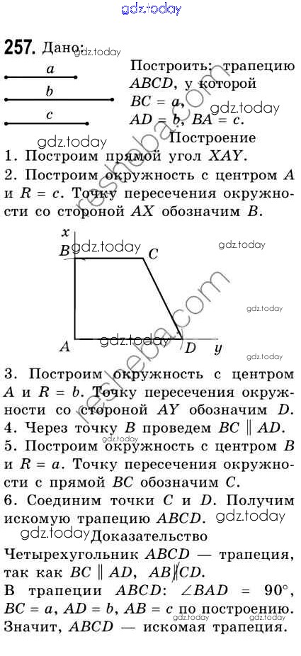 На страницах сайта gdz.today вы найдете учебный и вспомогательный материал, направленный на улучшения знаний школьной программы. ГДЗ - онлайн мир знаний § 8. Трапеция Решение. Глава 1. Четырехугольники 257 Учебнику по Геометрии для 8 класса Мерзляк, Полонский Вентана-граф Алгоритм успеха 2015
