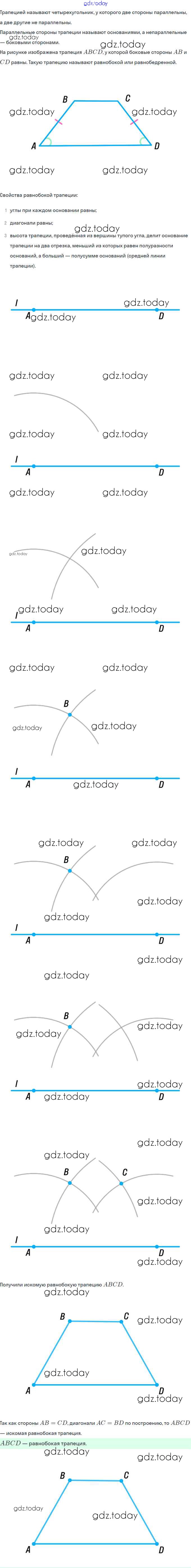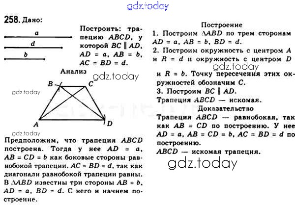 На страницах сайта gdz.today вы найдете учебный и вспомогательный материал, направленный на улучшения знаний школьной программы. ГДЗ - онлайн мир знаний § 8. Трапеция Решение. Глава 1. Четырехугольники 258 Учебнику по Геометрии для 8 класса Мерзляк, Полонский Вентана-граф Алгоритм успеха 2015