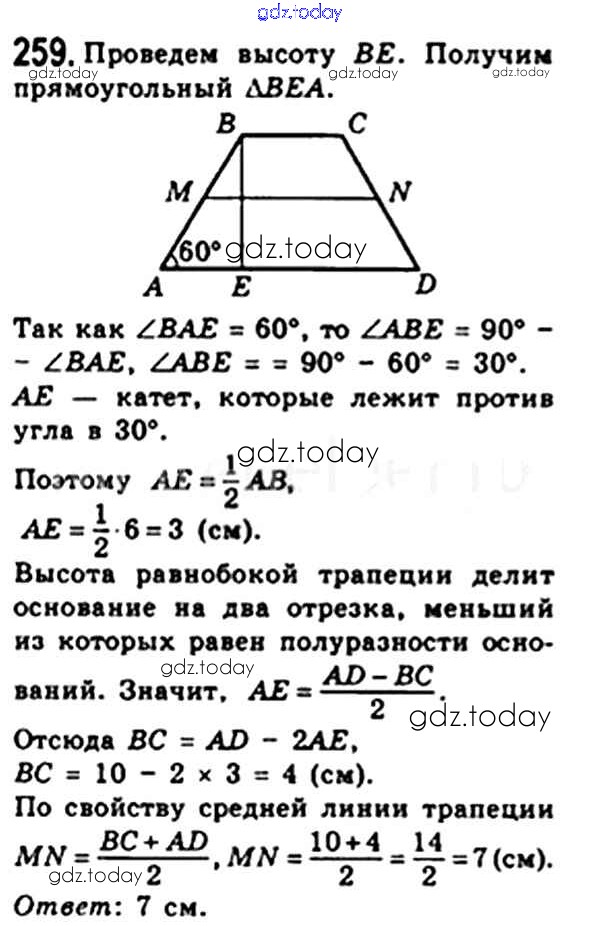 Ответы к § 8. Трапеция Решение. Глава 1. Четырехугольники 259 Учебнику по Геометрии для 8 класса Мерзляк, Полонский Вентана-граф Алгоритм успеха 2015