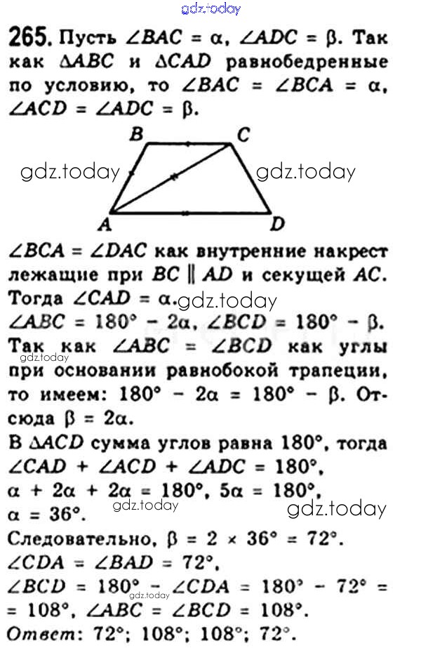 Ответы к § 8. Трапеция Решение. Глава 1. Четырехугольники 265 Учебнику по Геометрии для 8 класса Мерзляк, Полонский Вентана-граф Алгоритм успеха 2015
