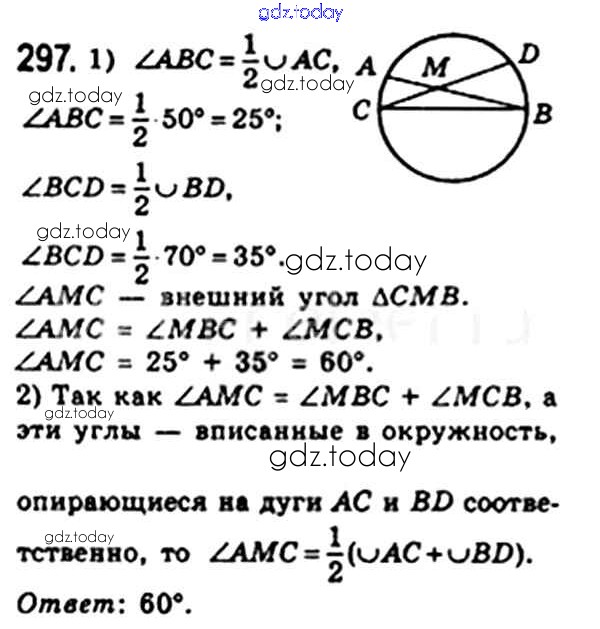 Ответы к § 9. Центральные и вписанные углы Решение. Глава 1. Четырехугольники 297 Учебнику по Геометрии для 8 класса Мерзляк, Полонский Вентана-граф Алгоритм успеха 2015