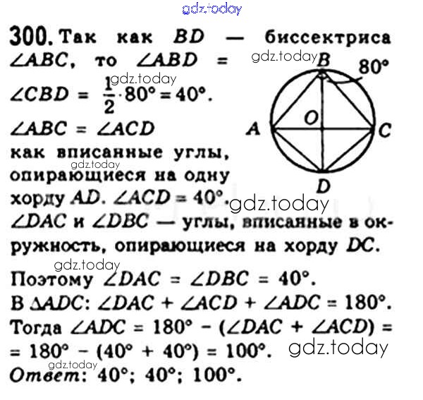 Ответы к § 9. Центральные и вписанные углы Решение. Глава 1. Четырехугольники 300 Учебнику по Геометрии для 8 класса Мерзляк, Полонский Вентана-граф Алгоритм успеха 2015