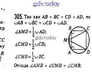 Ответы к § 9. Центральные и вписанные углы Решение. Глава 1. Четырехугольники 305 Учебнику по Геометрии для 8 класса Мерзляк, Полонский Вентана-граф Алгоритм успеха 2015