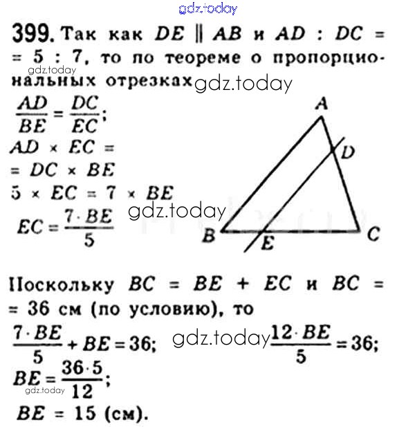 На страницах сайта gdz.today вы найдете учебный и вспомогательный материал, направленный на улучшения знаний школьной программы. ГДЗ - онлайн мир знаний § 11. Теорема Фалеса. Теорема о пропорциональных отрезках Решение. Глава 2. Подобие треугольников 399 Учебнику по Геометрии для 8 класса Мерзляк, Полонский Вентана-граф Алгоритм успеха 2015