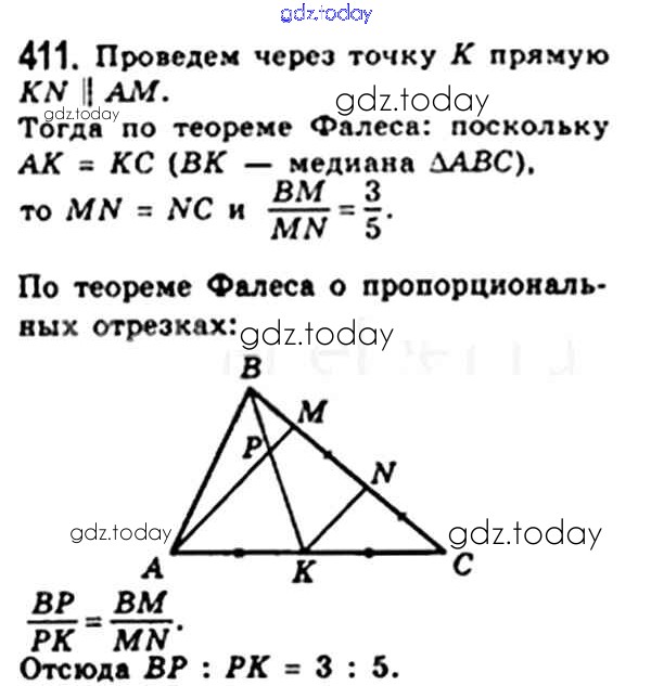 На страницах сайта gdz.today вы найдете учебный и вспомогательный материал, направленный на улучшения знаний школьной программы. ГДЗ - онлайн мир знаний § 11. Теорема Фалеса. Теорема о пропорциональных отрезках Решение. Глава 2. Подобие треугольников 411 Учебнику по Геометрии для 8 класса Мерзляк, Полонский Вентана-граф Алгоритм успеха 2015