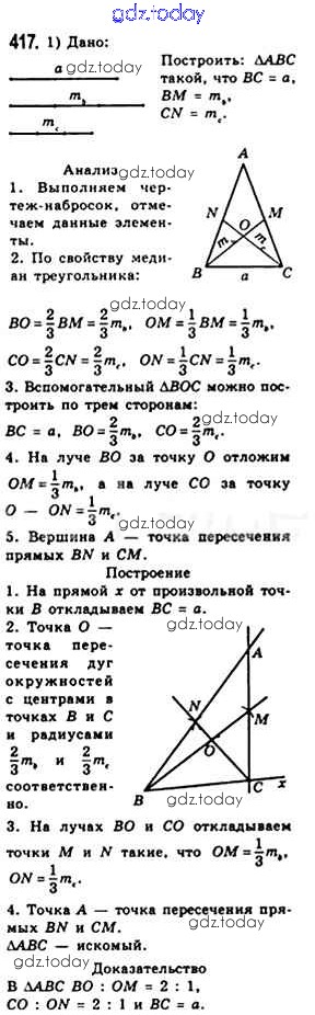 На страницах сайта gdz.today вы найдете учебный и вспомогательный материал, направленный на улучшения знаний школьной программы. ГДЗ - онлайн мир знаний § 11. Теорема Фалеса. Теорема о пропорциональных отрезках Решение. Глава 2. Подобие треугольников 417 Учебнику по Геометрии для 8 класса Мерзляк, Полонский Вентана-граф Алгоритм успеха 2015