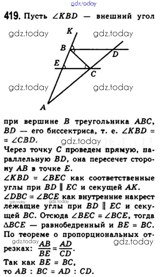 На страницах сайта gdz.today вы найдете учебный и вспомогательный материал, направленный на улучшения знаний школьной программы. ГДЗ - онлайн мир знаний § 11. Теорема Фалеса. Теорема о пропорциональных отрезках Решение. Глава 2. Подобие треугольников 419 Учебнику по Геометрии для 8 класса Мерзляк, Полонский Вентана-граф Алгоритм успеха 2015