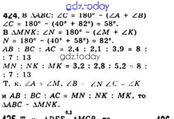 Ответы к § 12. Подобные треугольники. Лемма о подобных треугольниках Решение. Глава 2. Подобие треугольников 424 Учебнику по Геометрии для 8 класса Мерзляк, Полонский Вентана-граф Алгоритм успеха 2015