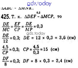 Ответы к § 12. Подобные треугольники. Лемма о подобных треугольниках Решение. Глава 2. Подобие треугольников 425 Учебнику по Геометрии для 8 класса Мерзляк, Полонский Вентана-граф Алгоритм успеха 2015