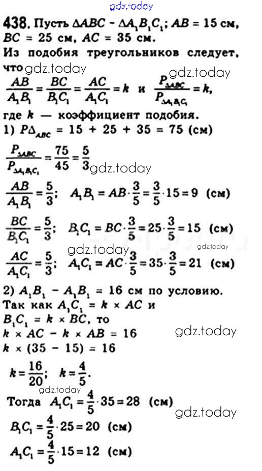 Ответы к § 12. Подобные треугольники. Лемма о подобных треугольниках Решение. Глава 2. Подобие треугольников 438 Учебнику по Геометрии для 8 класса Мерзляк, Полонский Вентана-граф Алгоритм успеха 2015