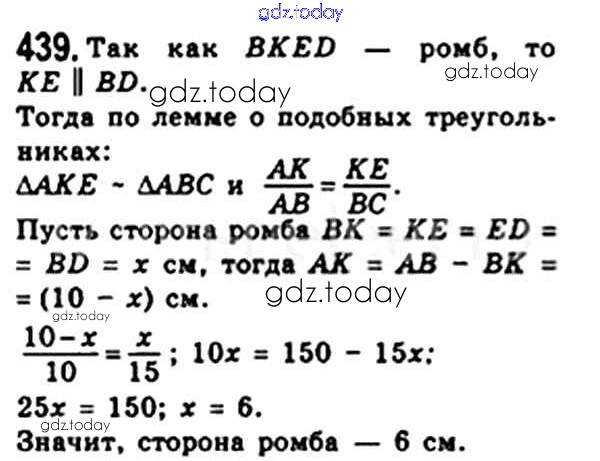 Ответы к § 12. Подобные треугольники. Лемма о подобных треугольниках Решение. Глава 2. Подобие треугольников 439 Учебнику по Геометрии для 8 класса Мерзляк, Полонский Вентана-граф Алгоритм успеха 2015