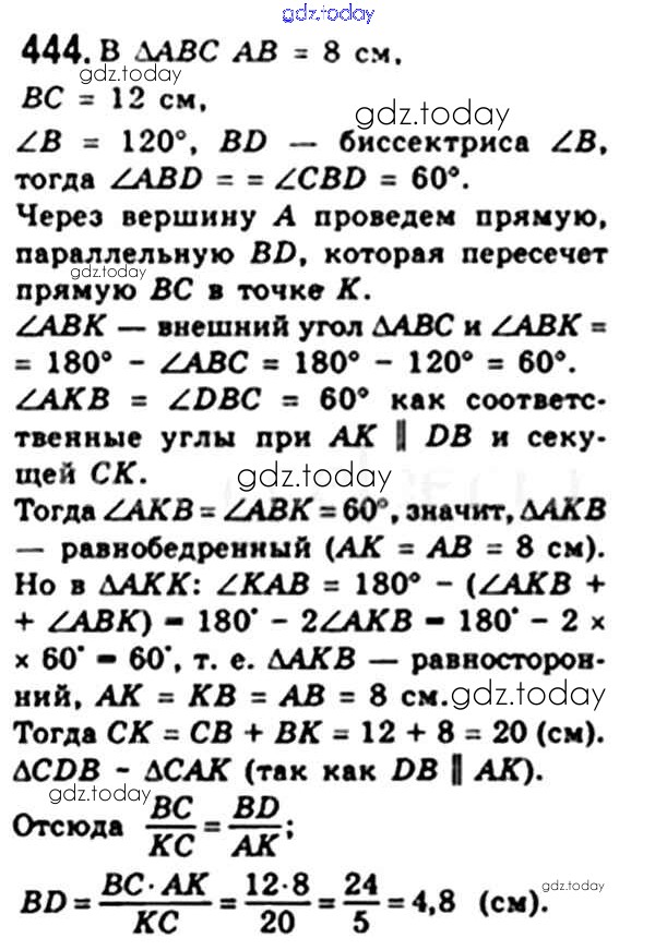 Ответы к § 12. Подобные треугольники. Лемма о подобных треугольниках Решение. Глава 2. Подобие треугольников 444 Учебнику по Геометрии для 8 класса Мерзляк, Полонский Вентана-граф Алгоритм успеха 2015