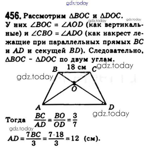 Ответы к § 13. Первый признак подобия треугольника. Свойство пересекающихся хорд. Свойство касательной и секущей. Теорема Менелая. Теорема Птолемея. Решение. Глава 2. Подобие треугольников 456 Учебнику по Геометрии для 8 класса Мерзляк, Полонский Вентана-граф Алгоритм успеха 2015