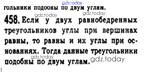Ответы к § 13. Первый признак подобия треугольника. Свойство пересекающихся хорд. Свойство касательной и секущей. Теорема Менелая. Теорема Птолемея. Решение. Глава 2. Подобие треугольников 458 Учебнику по Геометрии для 8 класса Мерзляк, Полонский Вентана-граф Алгоритм успеха 2015