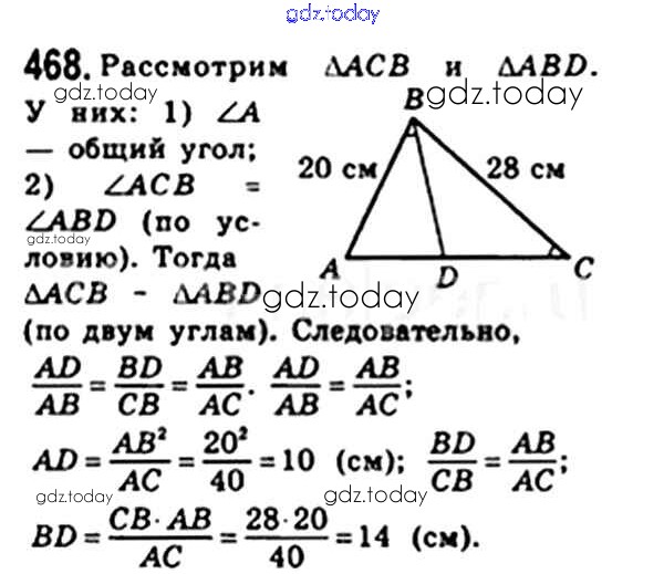 На страницах сайта gdz.today вы найдете учебный и вспомогательный материал, направленный на улучшения знаний школьной программы. ГДЗ - онлайн мир знаний § 13. Первый признак подобия треугольника. Свойство пересекающихся хорд. Свойство касательной и секущей. Теорема Менелая. Теорема Птолемея. Решение. Глава 2. Подобие треугольников 468 Учебнику по Геометрии для 8 класса Мерзляк, Полонский Вентана-граф Алгоритм успеха 2015