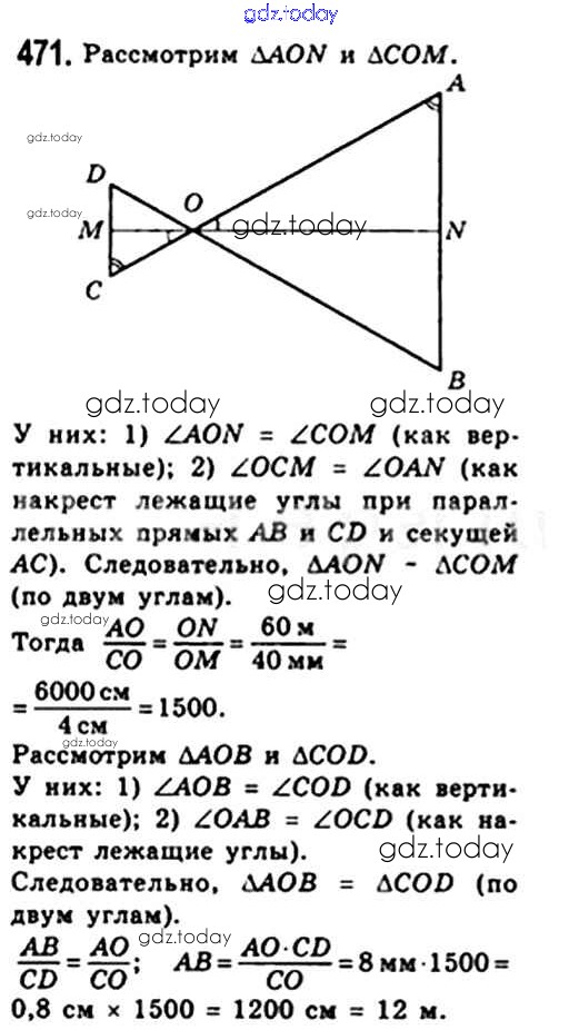 На страницах сайта gdz.today вы найдете учебный и вспомогательный материал, направленный на улучшения знаний школьной программы. ГДЗ - онлайн мир знаний § 13. Первый признак подобия треугольника. Свойство пересекающихся хорд. Свойство касательной и секущей. Теорема Менелая. Теорема Птолемея. Решение. Глава 2. Подобие треугольников 471 Учебнику по Геометрии для 8 класса Мерзляк, Полонский Вентана-граф Алгоритм успеха 2015
