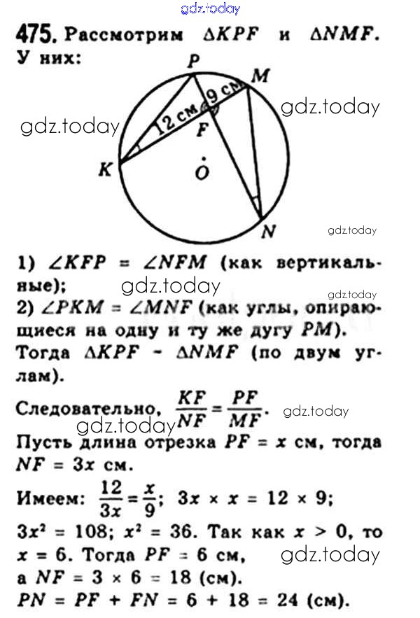 Ответы к § 13. Первый признак подобия треугольника. Свойство пересекающихся хорд. Свойство касательной и секущей. Теорема Менелая. Теорема Птолемея. Решение. Глава 2. Подобие треугольников 475 Учебнику по Геометрии для 8 класса Мерзляк, Полонский Вентана-граф Алгоритм успеха 2015