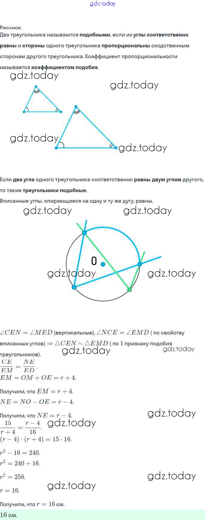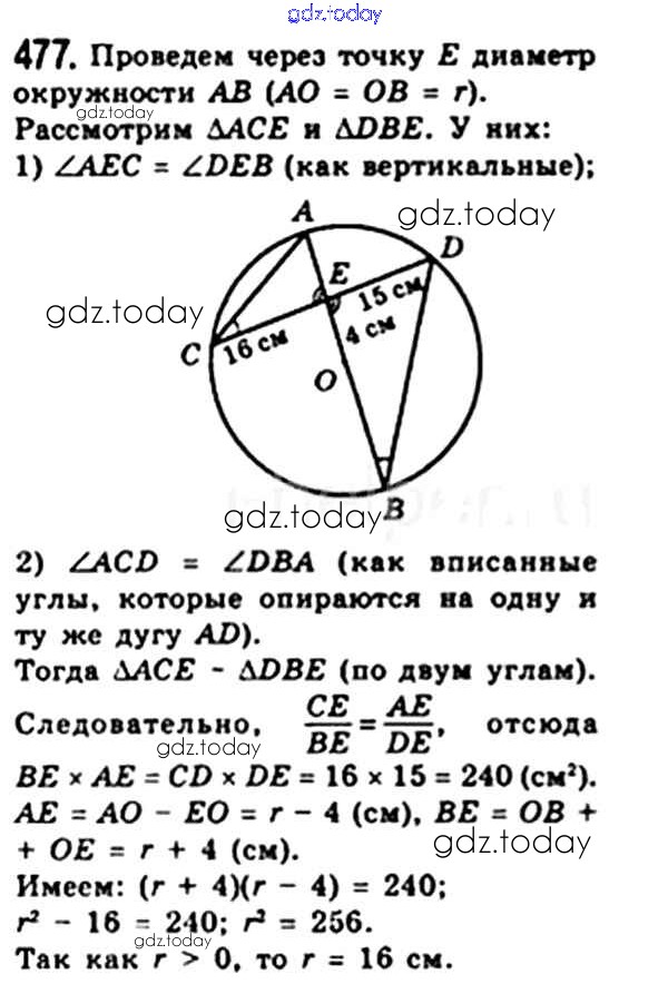 Ответы к § 13. Первый признак подобия треугольника. Свойство пересекающихся хорд. Свойство касательной и секущей. Теорема Менелая. Теорема Птолемея. Решение. Глава 2. Подобие треугольников 477 Учебнику по Геометрии для 8 класса Мерзляк, Полонский Вентана-граф Алгоритм успеха 2015