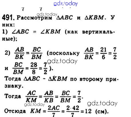 Ответы к § 14. Второй и третий признак подобия треугольника Решение. Глава 2. Подобие треугольников 491 Учебнику по Геометрии для 8 класса Мерзляк, Полонский Вентана-граф Алгоритм успеха 2015