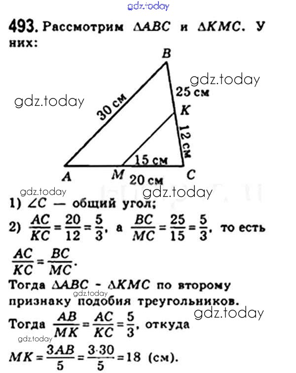 Ответы к § 14. Второй и третий признак подобия треугольника Решение. Глава 2. Подобие треугольников 493 Учебнику по Геометрии для 8 класса Мерзляк, Полонский Вентана-граф Алгоритм успеха 2015