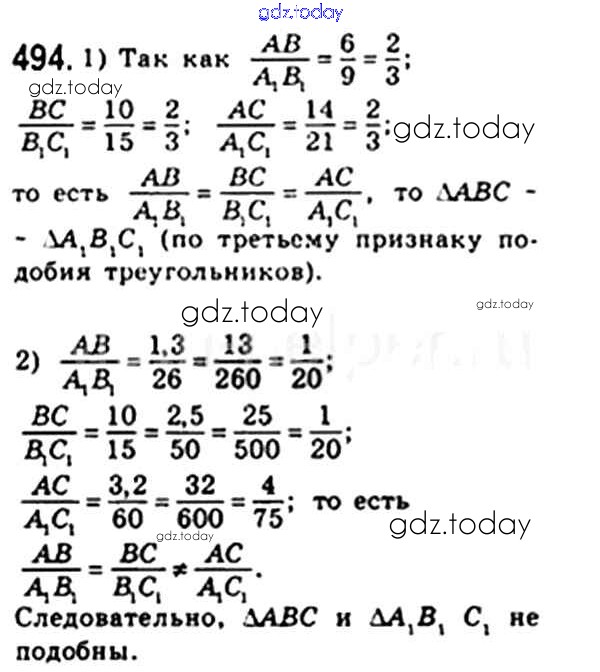 Ответы к § 14. Второй и третий признак подобия треугольника Решение. Глава 2. Подобие треугольников 494 Учебнику по Геометрии для 8 класса Мерзляк, Полонский Вентана-граф Алгоритм успеха 2015