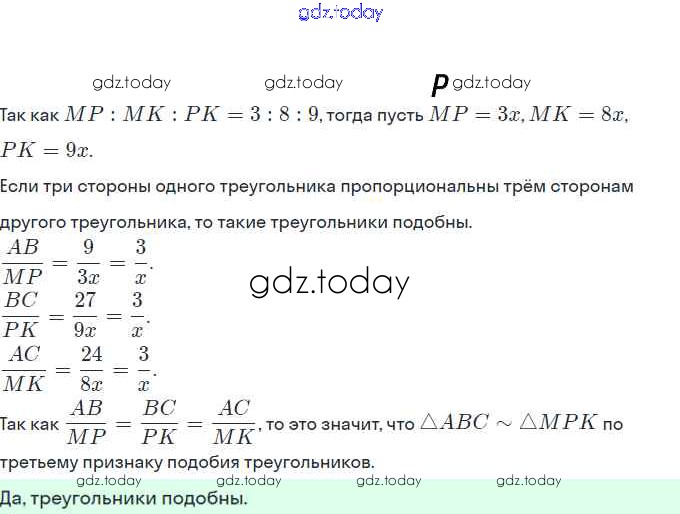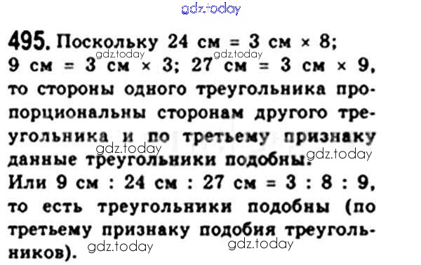 Ответы к § 14. Второй и третий признак подобия треугольника Решение. Глава 2. Подобие треугольников 495 Учебнику по Геометрии для 8 класса Мерзляк, Полонский Вентана-граф Алгоритм успеха 2015