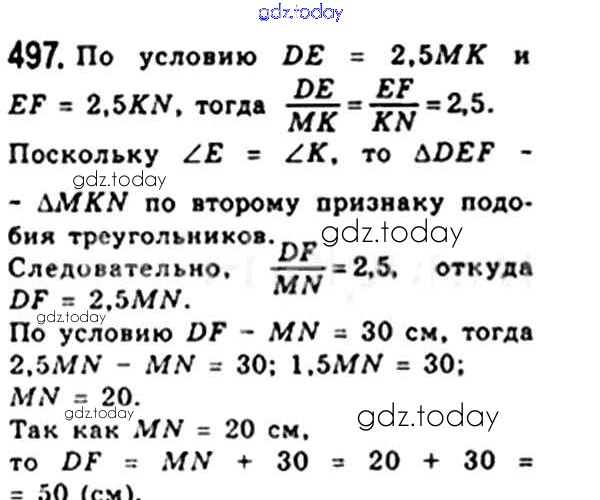 Ответы к § 14. Второй и третий признак подобия треугольника Решение. Глава 2. Подобие треугольников 497 Учебнику по Геометрии для 8 класса Мерзляк, Полонский Вентана-граф Алгоритм успеха 2015